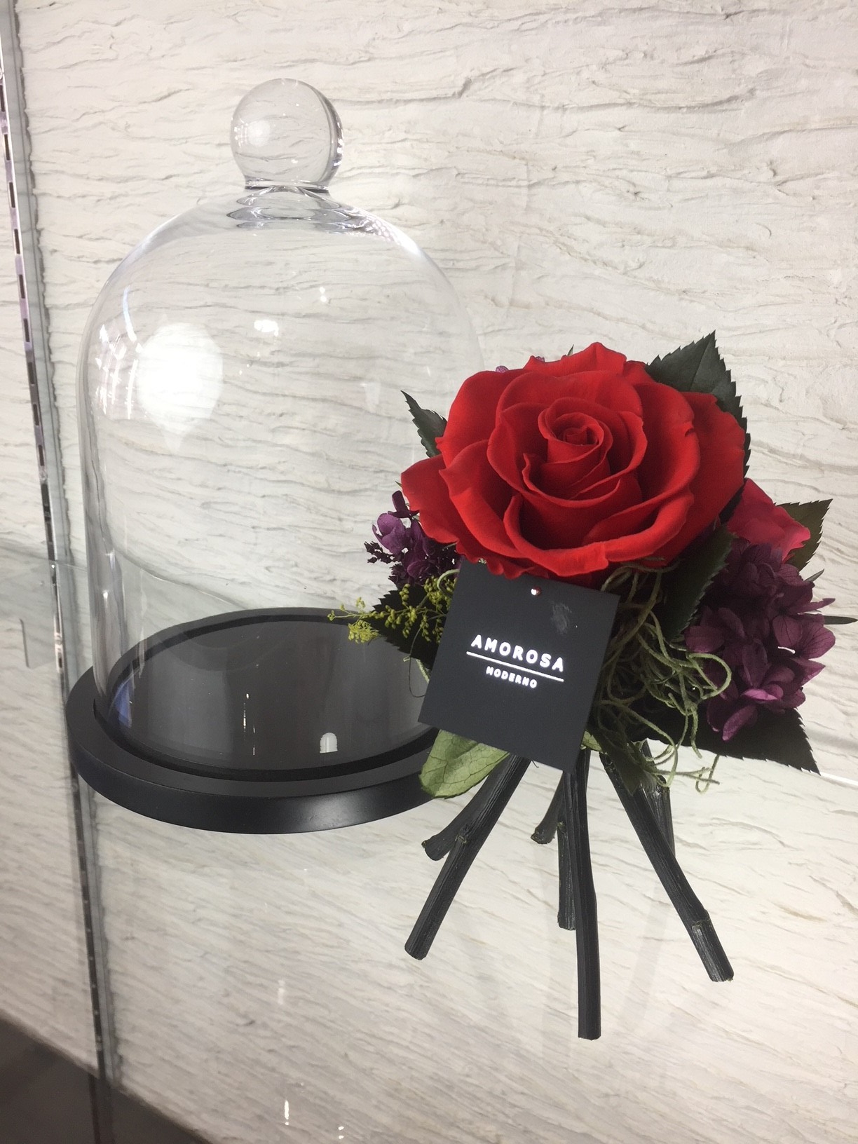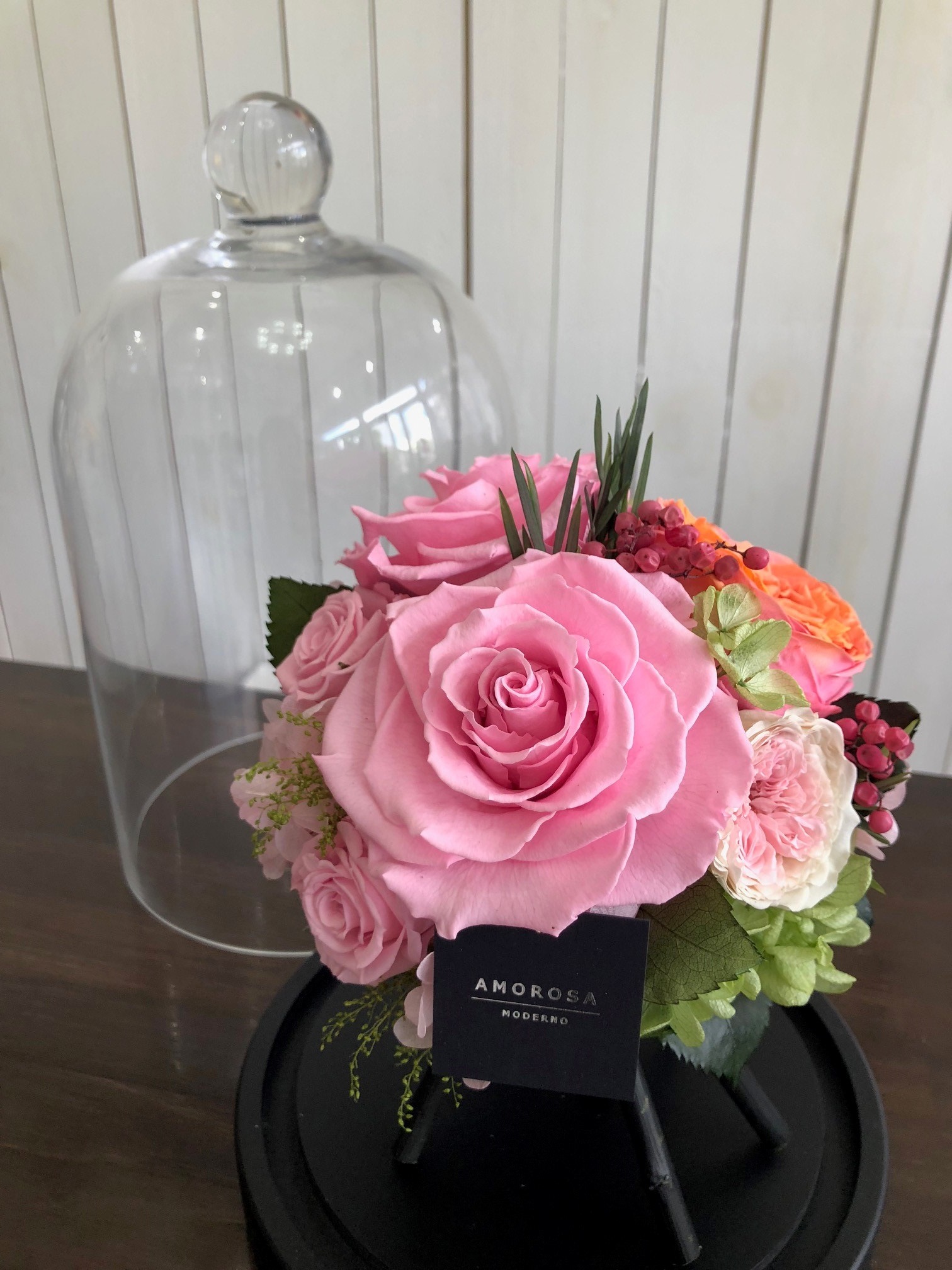 商品説明: ■カラー:濃いピンク ■使用花材:【プリザーブドフラワー】・ローズ・グリーン・ローズリーフ・ローズステム ※ガラスの蓋は開け閉め出来ます。