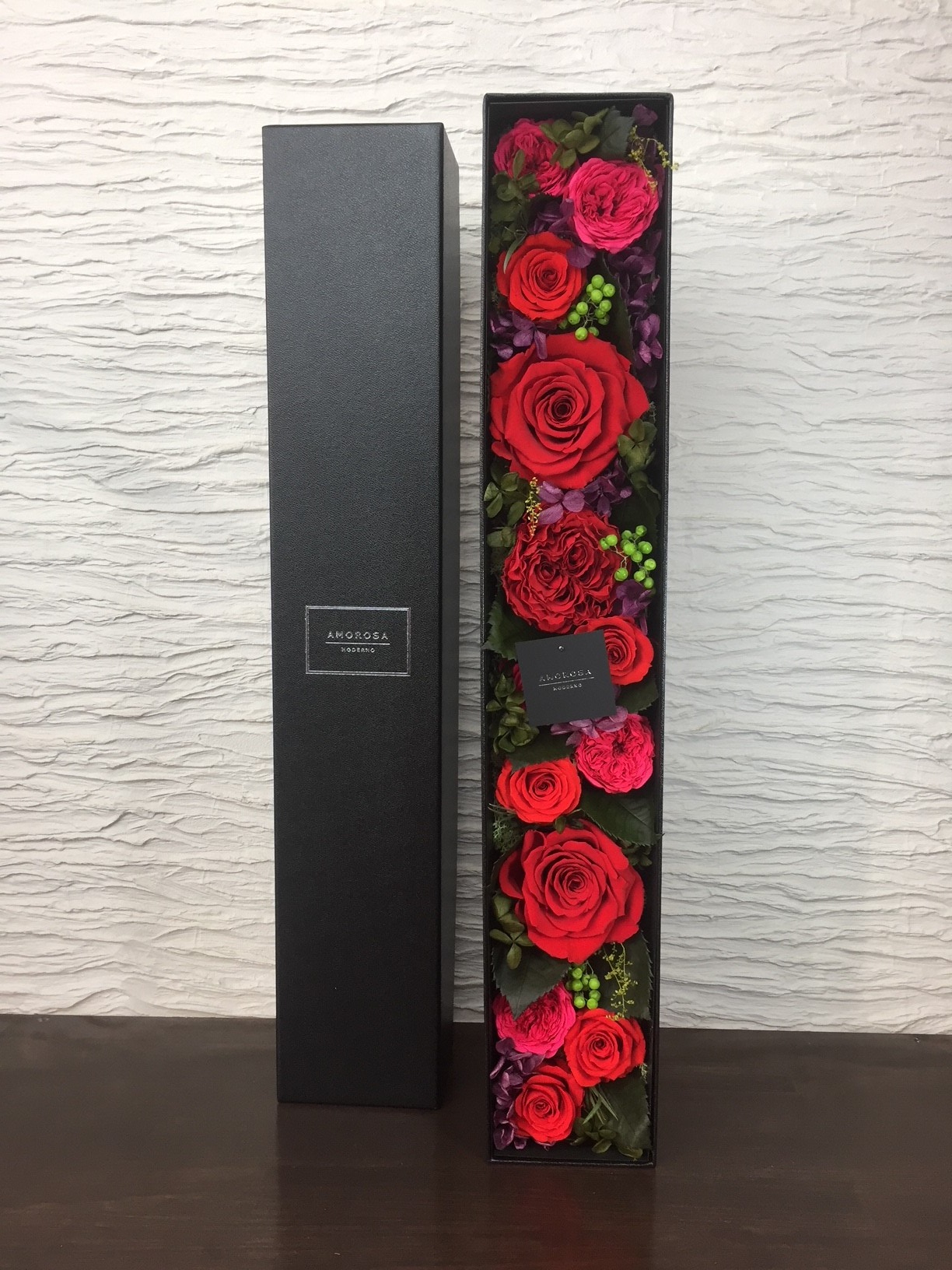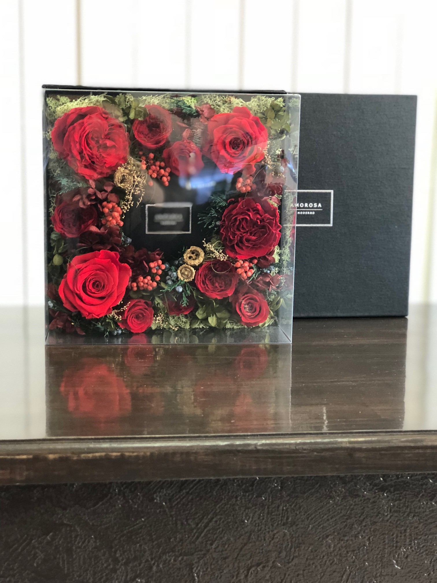 商品説明: ■カラー:ブルー ■使用花材:【プリザーブドフラワー】・ローズ・アジサイ・グリーン・ローズリーフ